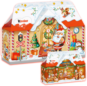 Ett hus fullt av kul. När barnen blandar adventskalender 3D-huset är julsäsongen en godbit. Denna påkostade designade stuga verkar som en söt ren eller som en vittig tomtenisse-verkstad och erbjuder därmed en kärleksfull inblick i jultomts vardagliga arbete. En fantastisk kalender som berättar historier med hans bilder. Bakom de 24 små dörrarna som dekorerar huset runt omkring är läckra överraskningar från den populära barnchoklad.